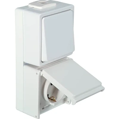 OPUS® AQUA Switch/Button with Socket, Vertical Design, Universal Off/Off Switch, Colour Pure White