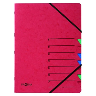 Sorting folder consisting of sturdy pressboard with elastic band stabilises the folder and protects the documents Coloured index tab for quick access to individual pages of the organisation folder; print 1-7 Lid of the folder can be individually written on Areas of application: for sorting and storing loose documents; in the office, in the home office, at school or at university Box contents: Pagna Easy 24061-01 folder 240 x 320 x 4 mm, 1 piece