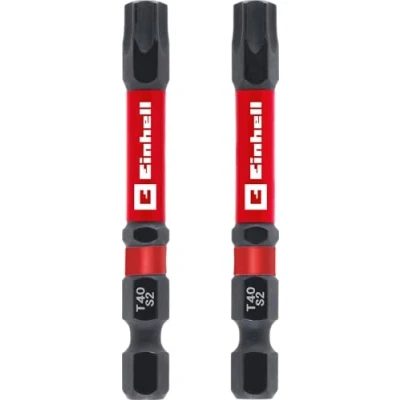 Original Einhell Impact Bits with Double Torsion, 2 Pieces, 60 mm, T40 (S2 Steel, High Durability, Torsion Effect, Red Colour Ring, E 6.3 Shank)