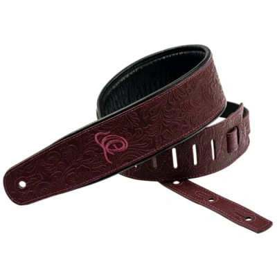 Ortega Guitars Adjustable Guitar Strap Acoustic Guitar/Bass, Electric Guitar/Bass Byzantine Series Genuine Leather, Bordeaux (OSBY 5)
