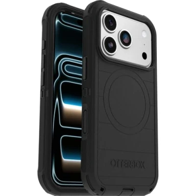 Defender Series Pro MagSafe case for iPhone 17 Pro undergoes thousands of hours of drop testing to ensure your smartphone gets the utmost protection. It has rugged drop protection with 7 times as many drops as military standard (MIL-STD-810G 516.6). The tri-layer defense with a silicone cover to resist bumps, rigid inner shell to hold your phone in place and a memory-foam backing for stability. Its raised edges protect your smartphone's camera and screen from serious drops and scrapes. Equipped with an integrated Camera Control button for seamless interaction. The Defender Series Pro case guarantees MagSafe compatibility thanks to built-in magnets perfectly aligned to make wireless charging faster and easier than ever before. Seamlessly attach and remove MagSafe accessories through built-in magnets. Defender Series Pro MagSafe contains a minimum of 35% recycled content, consisting of 100% recycled plastics. OtterBox Defender Series Pro MagSafe provides built-in anchors to let you connect phone straps to prevent drops. Pair your case with a scratch resistant and durable OtterBox screen protector for total, 360-degree protection. Compatible with iPhone 17 Pro Reduced Waste Packaging: At OtterBox we made our retail packaging from sustainable materials that are fully recyclable and use nearly no plastic.
