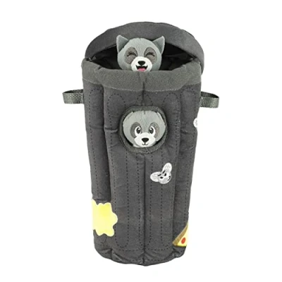 HIDE & SQUEAK FUN: The Hide A Raccoon dog puzzle is an easy way to get pups engaged for hours of fun! Just fill the trash bin with the 6 squeaky plush toys, toss it, and let your dog's natural hunting instincts kick in! 2-IN-1 INTERACTIVE PLAY: Toss the trash-filled bin, place it on the ground, or take the squeaky plush toys out and launch them for a game of fetch your dog is sure to love! CHALLENGING & IRRESISTIBLE: Keep boredom at bay and your curious canine mentally-stimulated while feeding their natural instincts to hunt! Your pup won't be able to resist dumpster diving for the plush squeaky raccoons, newspaper, fish bone, and apple core. GENTLE ON THE TEETH AND GUMS: The stuffed plush texture of the Hide A Raccoon dog toy is easy on the teeth, making it a great choice for both adult dogs and puppies.