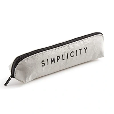 OVAL CASE with approximate capacity of up to 60 pieces. FINISH imitation paper in GREEN color, very pleasant to the touch. ZIP LOCK and black handle. SIZE 218 x 50 x 62 mm allows you to use it as a case, cosmetic bag or case minigafas. Compact and multipurpose. RECYCLABLE MATERIAL Made of tyvek, a lightweight, flexible and durable material that is also fully recyclable. Beautiful eco-friendly bag to store your little everyday items. Message text GOOD VIBES.