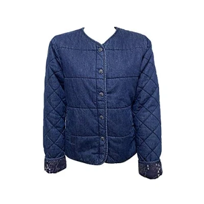Quilted denim jacket Raw denim jacket incorporating a subtle and lightweight touch of the Allover pattern. Short denim jacket rounded collar, printed lining. Button opening, welt pockets at the front. Material: 100% cotton. Sizes available: 0-3