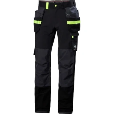 4-way stretch fabric ! Lightweight fabric ! Hanging pockets with double lined bottom and nylon webbing for durability ! Broad center back belt loop for extra stability and strength ! Gusset in crotch for freedom of movement ! Plastic covered metal buttons ! Thigh pocket with fastener closure ! ID card loop ! Ruler pocket ! Reinforcement fabric at knee and bottom hem ! Articulated knees for optimal mobility ! Knee Pad pockets accessible from the outside ! Knee Pad position can be adjusted by 5 cm for optimal mobility ! Possibility to increase leg length by 5cm ! Reflective details