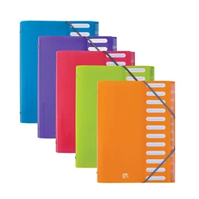 Oxford A4 12 Pocket PP File Folder 5 Assorted Colours (Pack of 12)
