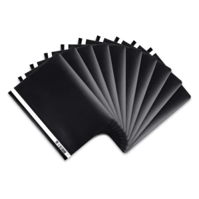 The Oxford plastic file folder consists of a coloured back panel in black and a transparent lid On the left side of the lid, the staplers have a white cardboard strip, which can be pulled out for labelling Thanks to the elastic and durable plastic, the folders can also be bent without damaging the contents The plastic file folders offer a quick and uncomplicated shape for filing all sheets up to DIN A4 format Measures 9" W x 12.2" H, you will receive 10 file folders in black