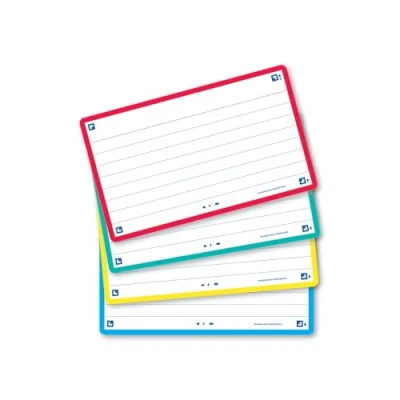 Amazon7.5cm x 12.5cm pack of 80 Flash Cards with an assortment of 4 coloured frames to help organise your subjects by colour while maintaining the contrast of a white background Ruled on both sides helping you revise by writing a question on the front of the flash card and the answer on the back Premium 250gsm card: smooth for comfortable writing and stiff for sorting and durability. Organise your revision subjects by colour, as the Scribzee app automatically files your flash cards in coloured folders Get the range of flash cards with five colours to choose from and three formats (ruled, squared or blank), they're all you need to succeed in your exams