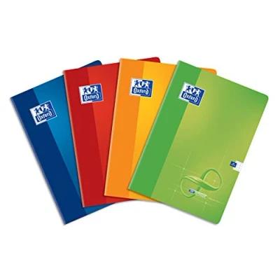 A5 format. 60 squared sheets with side margin. Snow white and silky smooth paper look paper 90 g/m². Innovative cover: synthetic, waterproof, light and elastic, comfortable to the touch, cannot be torn. Mix of colours: yellow, red, green, blue. Pack of 5.