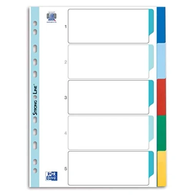 Blank Index 5 Tabs, 5 Pieces Coloured blank tabs (blue, light blue, red, green, yellow) Dividers made from 0.12 mm thick plastic film 5 sheets in A4 full coverage, blank, plus writable cover sheet Size: 225 x 300 mm (W x H), 1 register