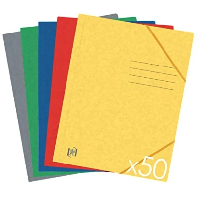 Composition: pack of 50 folders with flaps in 5 different colours (grey, blue, green, yellow and red). Thanks to its back and adjustable flaps, you can store up to 200 sheets easily. Dimensions: Width 24 cm x Height 32 cm. This cardboard folder has been specially designed to hold A4 (21 x 29, 7 cm) or A3 folded documents without any difficulty. Technology: cardboard pockets made with "Multilayer" technology. It allows the accumulation of different layers of kraft line, which ensures greater rigidity, resistance to bending, tearing and moisture absorption. Design: no more flap shirts with a marbled effect. Discover the new pockets with a graphic and trendy design. Origin: Top File + cardboard folders are entirely created and made in France, in the OXFORD factories located in Calvados (14).