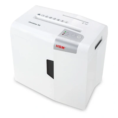 The reliable HSM shredstar X5 shreds all your confidential private information and office documents efficiently and securely. The shredder turns a maximum of 5 sheets at the same time into chips of 4.5mm x 30mm (safety level P-4). Thanks to the separate cutting mechanism, this device also destroys CDs, DVDs, credit cards and loyalty cards. The built-in photocell registers that you insert something into the device. This causes the shredder to automatically start and stop shredding. You will not be bothered by paper jams thanks to the anti-jam technology.The LED screen shows the status of the device: Power, Overload or Overheat. You can easily empty the 18 litre paper collection bin and the CD collection holder by lifting the top part. Through the window you can always see how full it is. The paper shredder is very quiet (58 dB), so you can place it near a workplace with peace of mind.