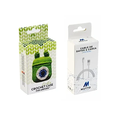 Pack Airpod Crochet Ricky + Data Cable USB Lightning Thread Spring