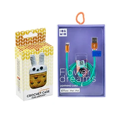 Pack Airpods Crochet George + Data Cable USB Lightning Flower Dreams