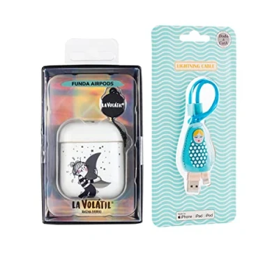 Pack Airpods Silver Moon Case + USB Lightning Data Cable Poupée Russe