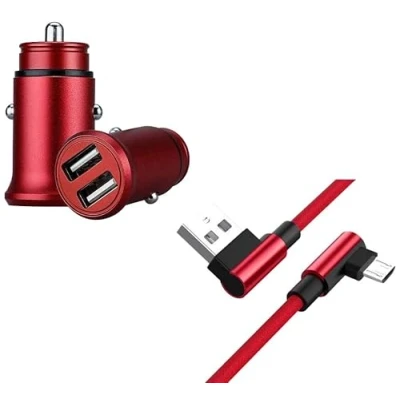 Pack for Samsung Galaxy J4 + Smartphone Micro USB (90 Quick Charge Cable Mini Double Cigarette Lighter Socket) (Red)