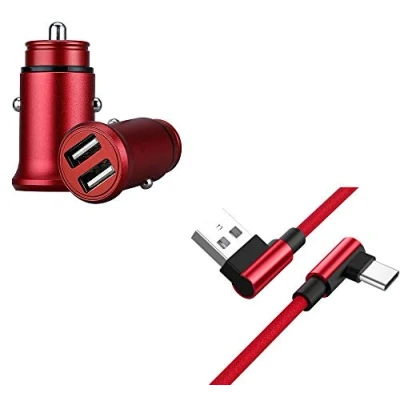 Pack for Samsung Galaxy S10e Type C Smartphone (90 Fast Charge Cable + Mini Double Cigarette Lighter Socket) (Red)