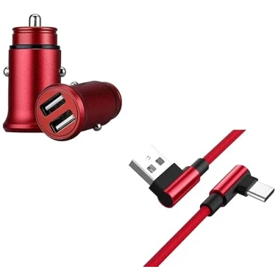 Pack for Xiaomi Mi 9T Type C Smartphone (90 Quick Charge Cable + Mini Double Cigarette Lighter Socket) (Red)