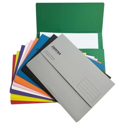 Pack of 10 Card Premium Foolscap Document Wallets Keep your documents organised and secure with these premium foolscap document wallets. Measuring 345 x 238mm, they are ideal for storing both A4 and foolscap documents. Crafted from 210gsm premium card, these wallets are designed for durability and long-lasting use. The expandable gusset accommodates up to 250 sheets, making them perfect for large files or projects. A pre-printed labelling panel with guide lines on the front provides a clear, structured space for identifying contents. Available in vibrant colours, these wallets make it easy to sort and organise your paperwork. Stylish and practical, they are perfect for both personal and professional use.