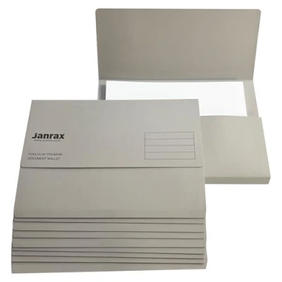 Pack of 10 Grey Card Premium Foolscap Document Wallets