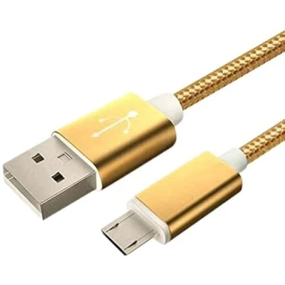 Pack of 2 Micro USB Nylon Metal Cables for Wiko View 3 Android Smartphone Charger Connector (Gold)