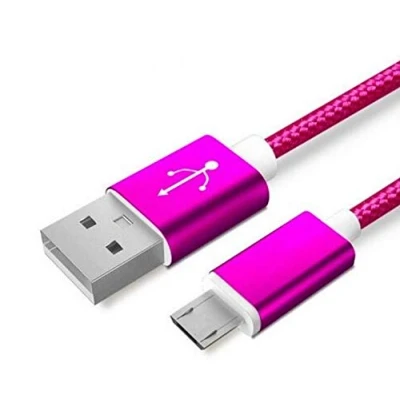 Pack of 3 Metal Nylon Micro USB Cables for Wiko View Android Smartphone Charger Connector (Pink)