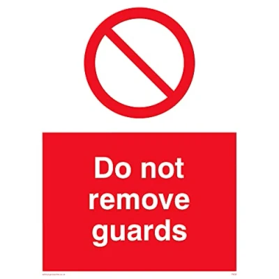 No Symbol This sign is made from vinyl / sticker ‘Air Release†vinyl makes it easy to stick to flat, clean surfaces without bubbles. Not for rough, plastic or dusty surfaces. A5 portrait Sign Text: Do Not Remove Guards