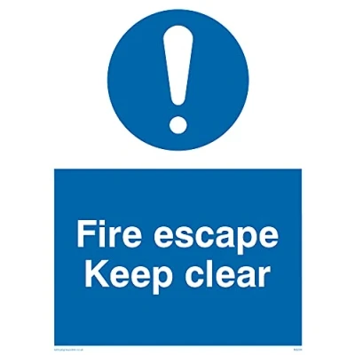 No Symbol This sign is made from vinyl / sticker ‘Air Release†vinyl makes it easy to stick to flat, clean surfaces without bubbles. Not for rough, plastic or dusty surfaces. A5 portrait Sign Text: Fire Escape Keep Clear