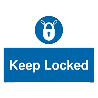 Mandatory keep locked This sign is made from vinyl high tack A stickier sticker. Uses a stronger adhesive to make it more suitable for plastic surfaces like Wheelie Bins or where the sticker might get rubbed. A5 landscape Sign Text: keep locked