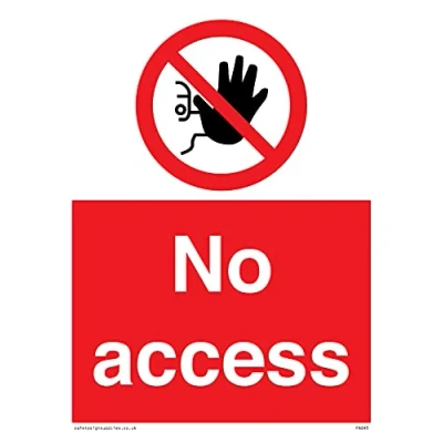 P905 : No access This sign is made from vinyl high tack A stickier sticker. Uses a stronger adhesive to make it more suitable for plastic surfaces like Wheelie Bins or where the sticker might get rubbed. A5 portrait Sign Text: No Access