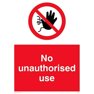 P905 : No access This sign is made from vinyl high tack A stickier sticker. Uses a stronger adhesive to make it more suitable for plastic surfaces like Wheelie Bins or where the sticker might get rubbed. A5 portrait Sign Text: No Unauthorised Use
