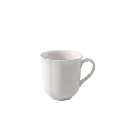 Elegant coffee mug with handle for stylish enjoyment of delicious coffee drinks, ideal for everyday use and special occasions Delicate relief as an eye-catcher, handle fits perfectly in the hand, fits under coffee machines, the height of 9 cm allows Also suitable for catering thanks to its handy shape, complements the Manoir crockery perfectly Dishwasher and microwave safe, high quality: premium porcelain made in Germany Box contents: 1x Villeroy & Boch Manoir coffee mug (300 ml), material: premium porcelain, colour: white