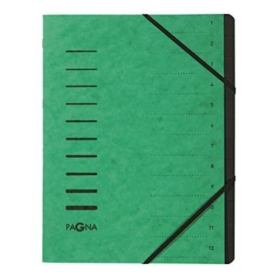 Document Wallet A4 12–Piece Printed "1–12 Green with Lid Corner Band Manufacturer number: 40059–03 Manufacturer: Gnadau Papierverarbeitung