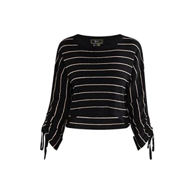 Knitted jumper with shiny yarn Soft yarn blend with viscose Gecropped and without cuffs Draped sleeves with drawstring