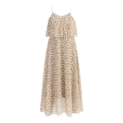 Maxi dress with all-over print With gold detailing Delicately flowing top Adjustable straps Viscose lining