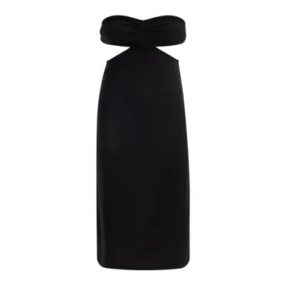 Figure-hugging midi dress With bandeau top Side cut-outs Elasticated jersey material Feminine midi length