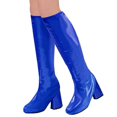 These are 70's style boot covers They are pulled over their own shoes Boot Covers come in blue Available in one size for women. Perfectly equipped for the next 70s party, Manufacturer: Widmann
