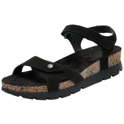 Panama Jack Women, black ankle strap sandals Flat woman's sandals.Black suede.Velcro Closure.Leather lining. Heel height: 4.50 cm Anatomical insole. Flexible and durable polyurethane sole. Made in Spain