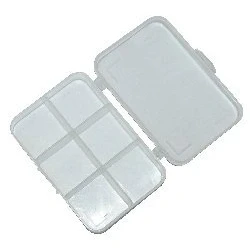 Panaro 102 Tackle Box - 1, 4 or 6 compartments - Dimensions: 91×66×21mm - Material: Polypropylene - Transparent - Fits into every coat pocket, backpack or carryall - Perfect for small tackle - Keep all of your tackle nicely organised! Practical, small and compact! The Panaro 102 is made of top quality transparent polypropylene. It fits into every coat pocket, backpack or carryall. The perfect way for storing your small tackle! These tackle boxes are available with 1, 4 or 6 compartments.