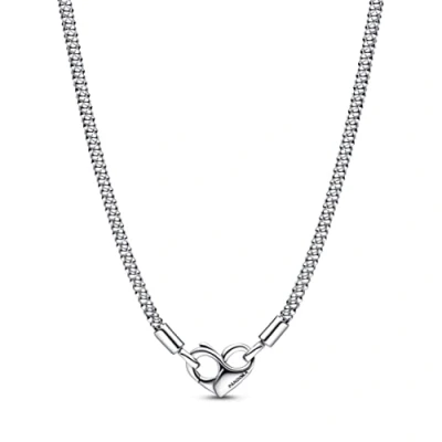 Give your collection a great update with the Pandora Moments link necklace with rivets This hand finished sterling silver necklace has a flexible textured chain and a heart clasp with infinity details that can be easily opened The necklace can be styled with any Pandora Moments O pendant or heart charm pendant Pandora Moments Collection The length of the chain is: 45 cm