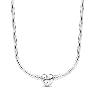 PANDORA Moments Schlangen Gliederarmband mit Herzverschluss aus Sterling Silber, kompatibel Kollektion, Länge: 45cm, 393091C00 45