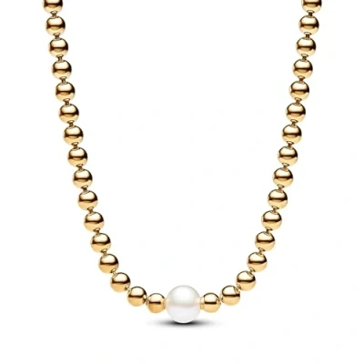 PANDORA Timeless Behandelte Süßwasserzuchtperle Collier Halskette aus Sterling Silber mit vergoldeter Metalllegierung und Zirkonia Steinen, Größe 45cm, 363176C01 45
