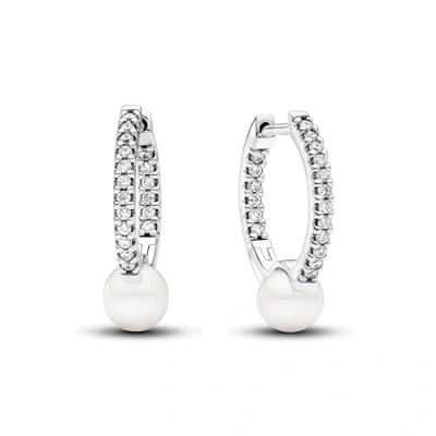 PANDORA Timeless Behandelte Süßwasserzuchtperle & Pavé Creolen aus Sterling Silber mit Zirkonia, 293171C01