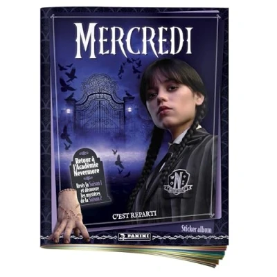 Dive into the strange and haunting world of Wednesday – Season 2 with this collection of cards full of mystery, secrets… and shadows from Nevermore Academy The album contains 32 pages, character relationship cards from the series, as well as a detachable insert including 1 large, dark and stylish poster to extend the adventure at Nevermore Academy Go on the hunt for 198 stickers to collect including 48 special stickers, as well as a mini sheet of nail tattoos that hides on average every 4 pockets, Manufacturer: Panini