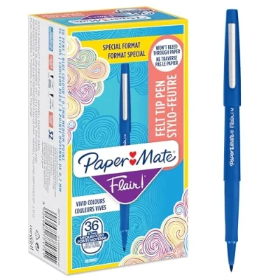 Paper Mate Flair Felt Tip Pens Medium Point (0.7mm) Blue 36 Count