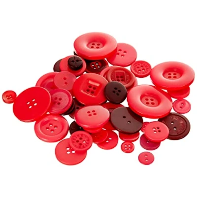 250 grams of assorted buttons in a mix of shapes and sizes The ultimate solution for the busy crafter Designed in the UK Available in a red colour Weighs 30 grams