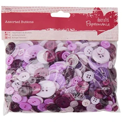 250 g of purple buttons in a mix of shapes and sizes Good solution for the busy crafter Designed to be used as a decorative item Suitable for indoor use