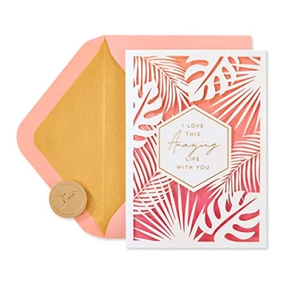 Front Message: I love this amazing life with you Inside Message: Here’s to many more years of adventure together. Happy Anniversary Share special anniversary wishes with your significant other with a beautifully crafted card by Papyrus! Card measures 5 x 7 in. Envelope Included. Papyrus offers premium stationery, greetings cards, gift wrap, gift bags and entertaining products for everyday occasions and all holiday seasons--all with unique designs and quality embellishments