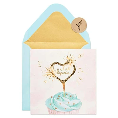 Front Message: Happy Together Inside Message: Endless wishes for all amazing things in your new life together This trendy wedding card by Papyrus features a shimmering design with sequins and glitter. Perfect to share with any couple on their engagement, wedding shower, wedding, 1st anniversary or any celebration Envelope and unique Papyrus gold seal included. Card measures 5.75 in. x 5.75 in. Extra postage may be required Papyrus offers premium stationery, greetings cards, gift wrap, gift bags and entertaining products for everyday occasions and all holiday seasons--all with unique designs and quality embellishments