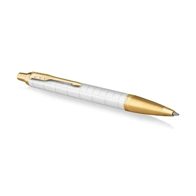 Parker IM Ballpoint Pen Premium Pearl Lacquer with Gold Trim Medium Point Blue Ink Refill Gift Box